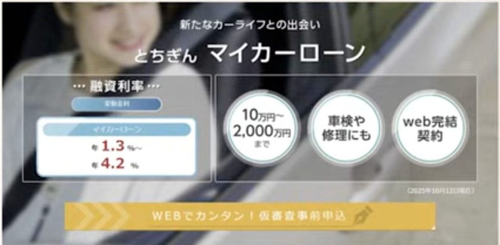 最低金利は「800万円以上の借入」に適用されるため、栃木エリアで高級車を購入する方に向いています。