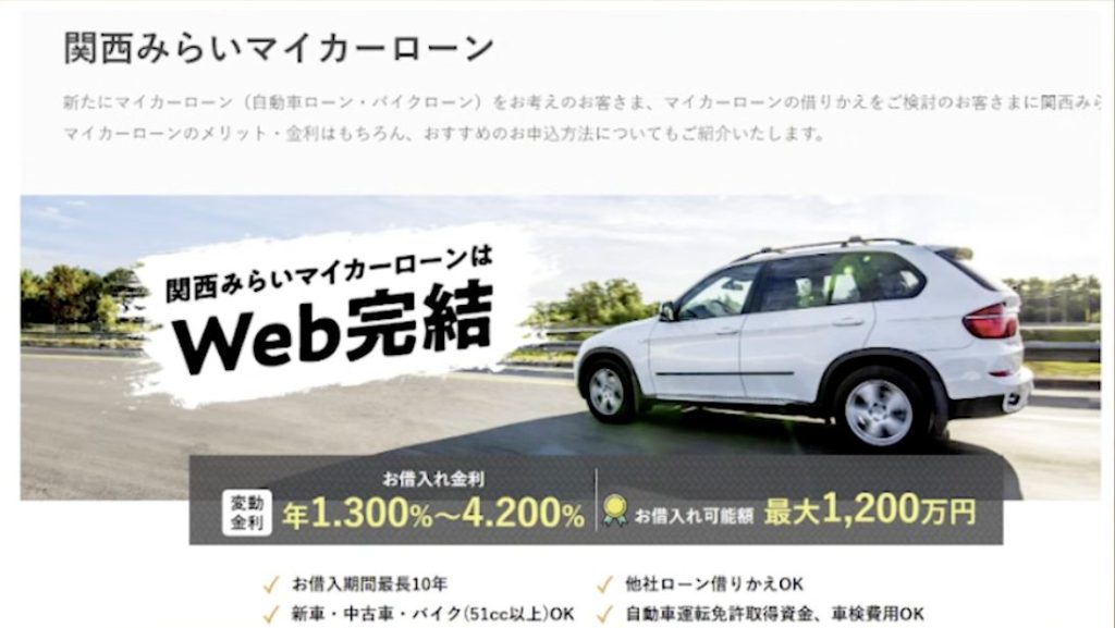 ホームページのデザインはりそな銀行と共通しており、関西みらい銀行はりそなグループの一員です。そのため、マイカーローンの内容もほぼ同等といえます。